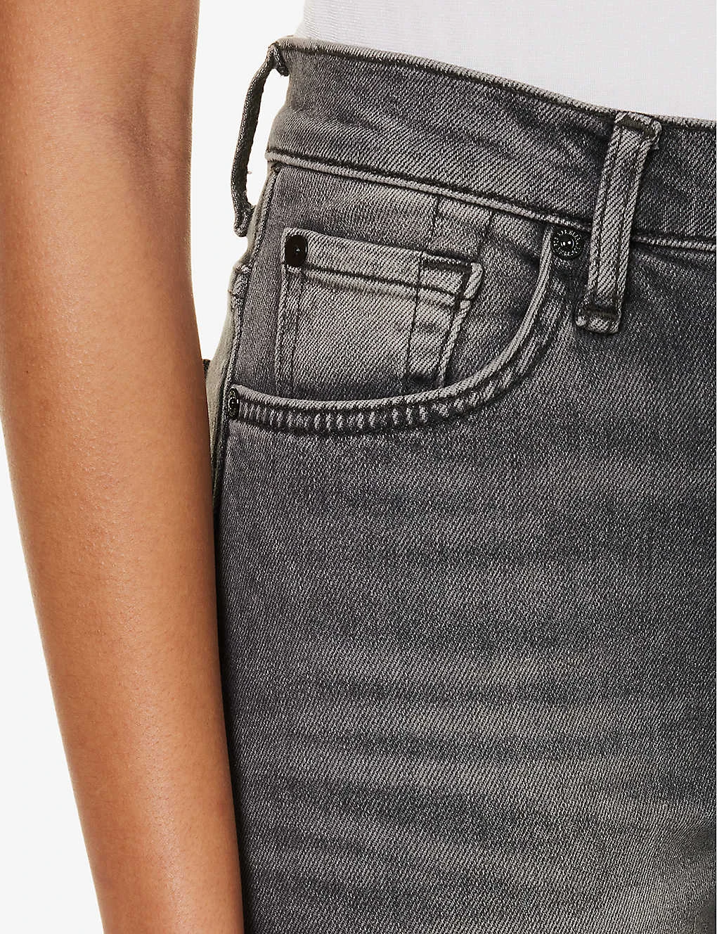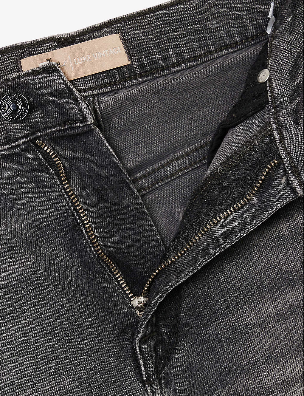 - Exposed button and concealed zip-fly fastening at front