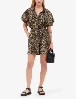 CLAUDIE PIERLOT Joan Leopard-print Relaxed-sleeve Cotton Playsuit
