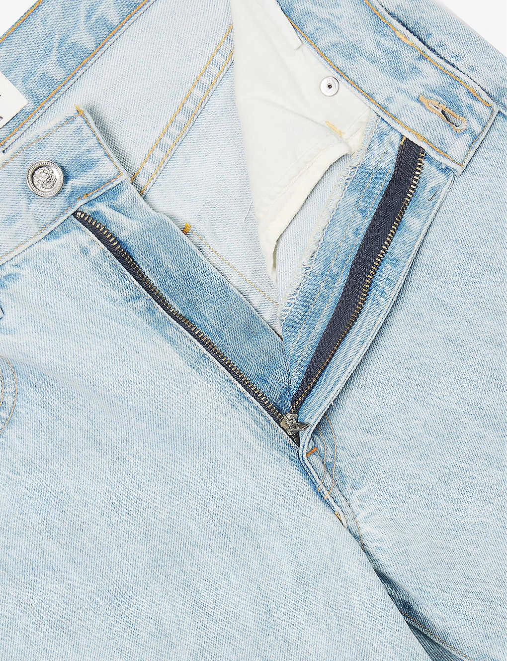 - Regular fit, mid-rise, wide leg, belt loops, five pockets, contrast stitching, silver-toned hardware