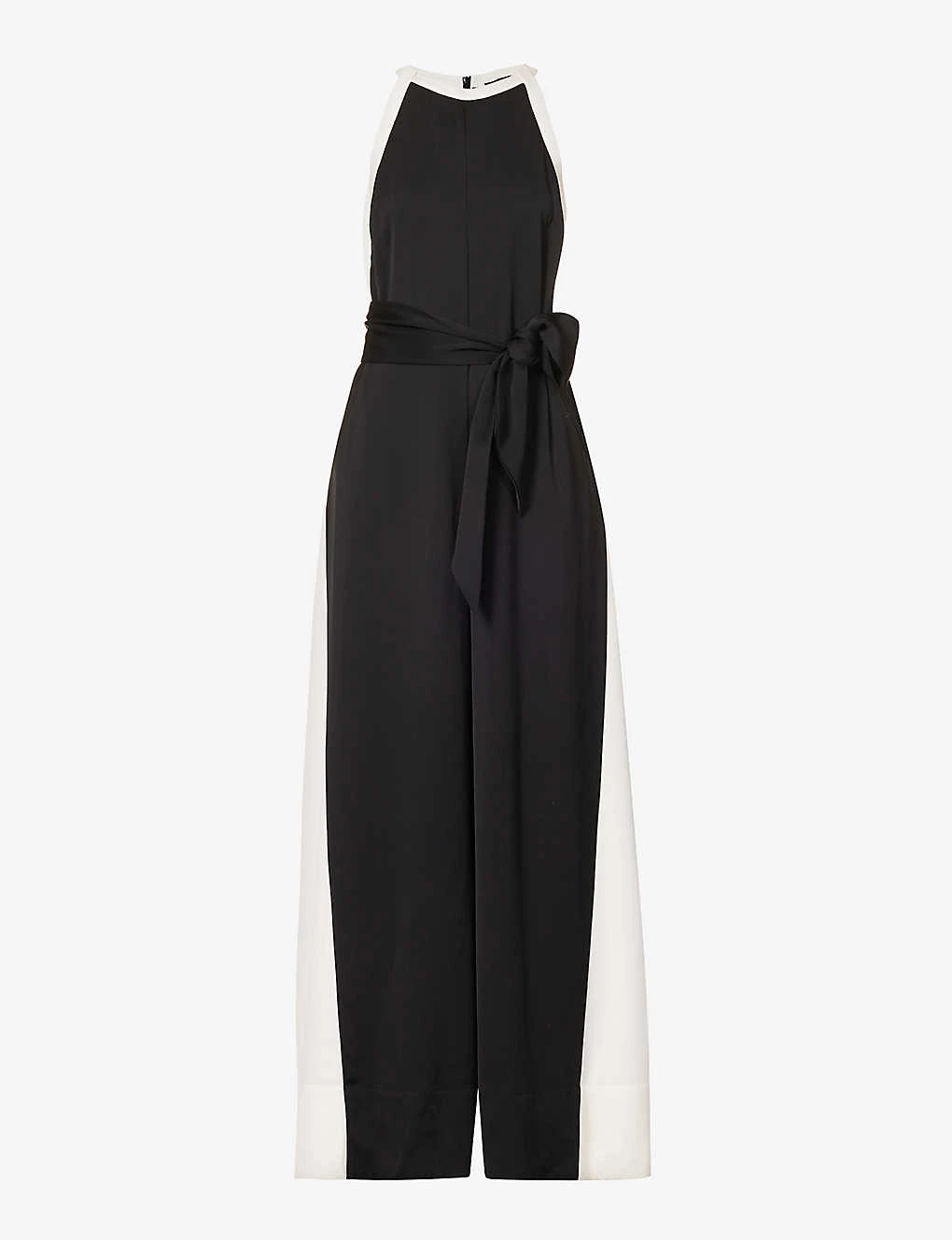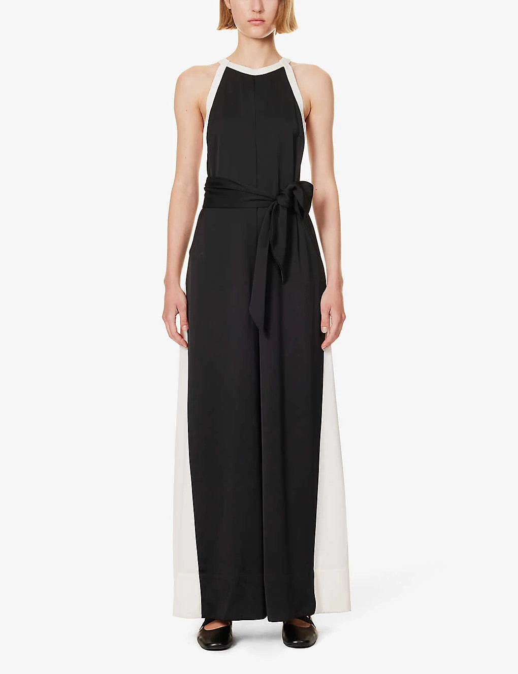 ME AND EM Notch-neck Belted-waist Recycled Polyester-blend Jumpsuit