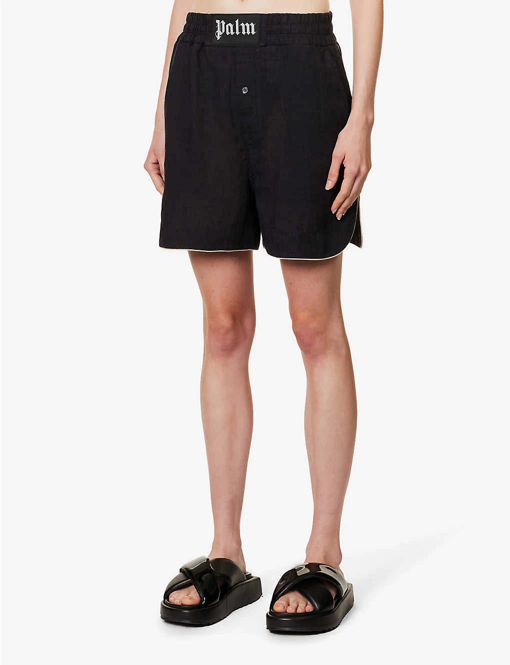 Be the first to review “Palm Angels Logo-patch High-rise Linen Shorts” Cancel reply