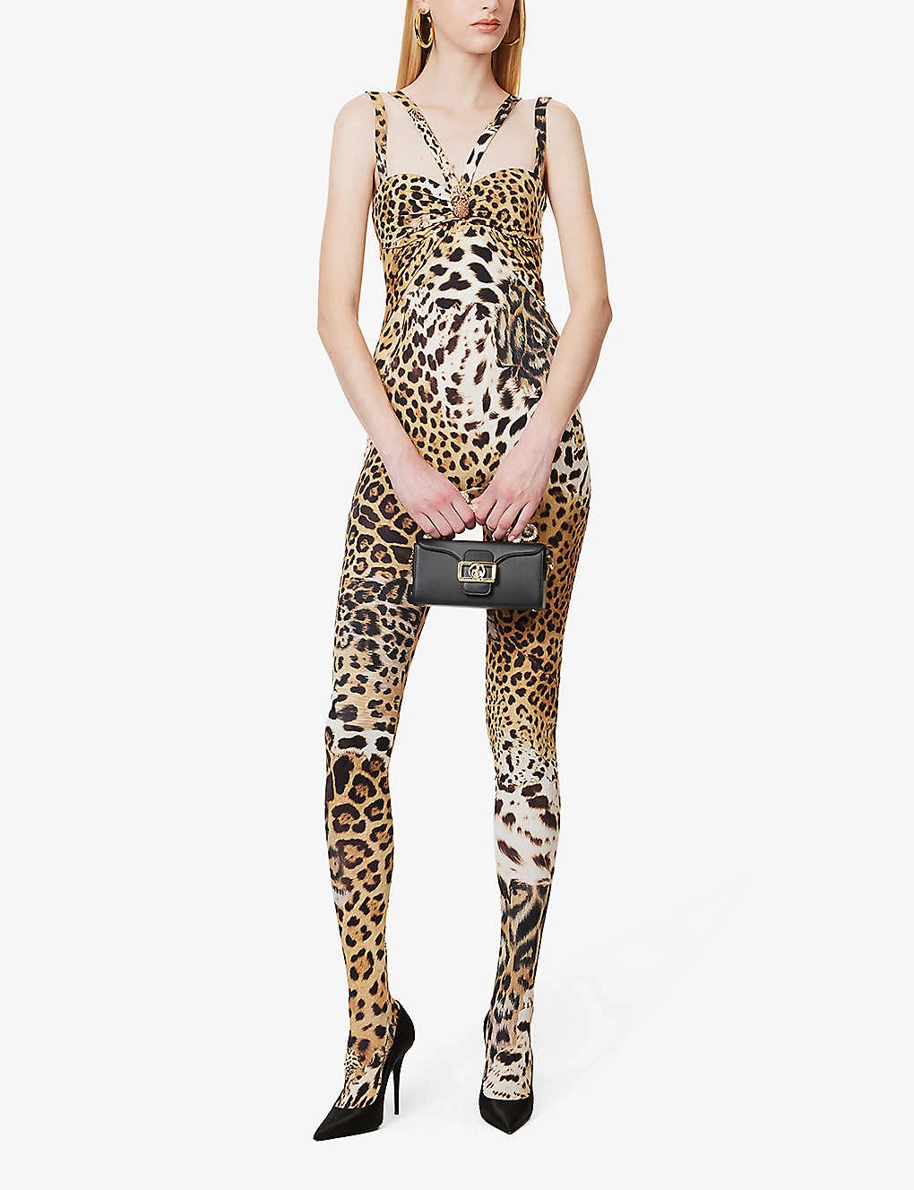 Be the first to review “Roberto Cavalli Leopard-print Charm-embellished Stretch-woven Jumpsuit” Cancel reply