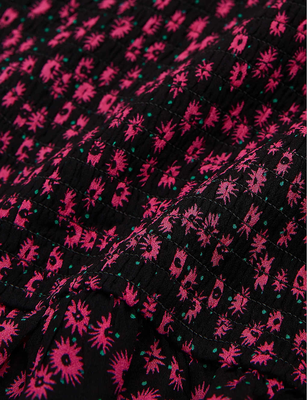 - Elasticated waistband, all-over exposed stitching, all-over, floral print, frilled hem