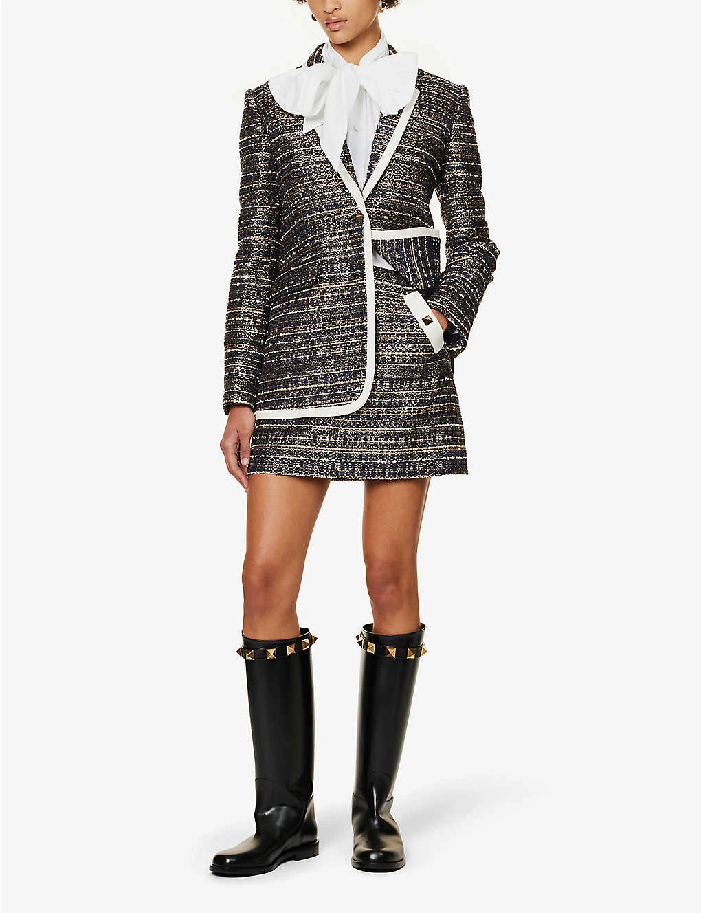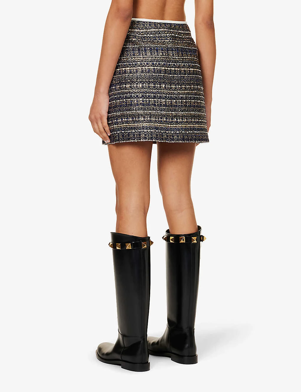 Be the first to review “Valentino Rockstud-embellished Metallic-weave Woven Mini Skirt” Cancel reply
