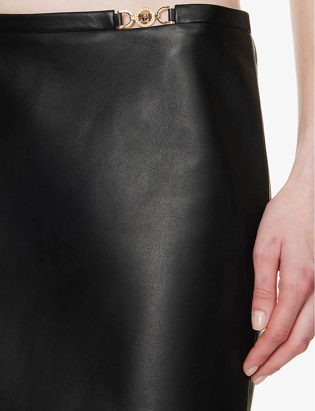 - Versace leather mini skirt