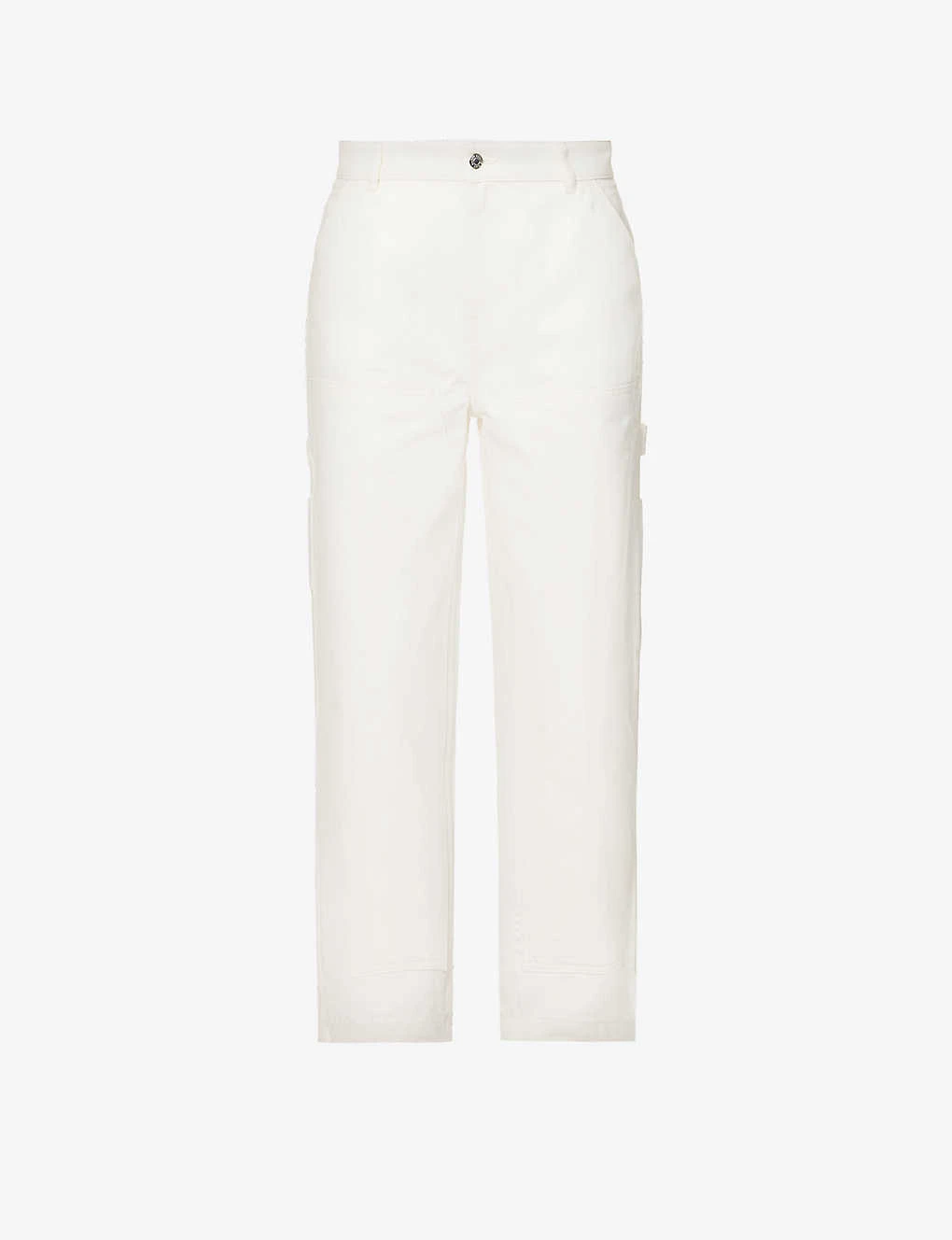 - Regular fit, mid-rise, tapered leg, belt loops, five pockets, double-knee panels, hammer-loop at side, two slip pockets at sides, brand patch at back, silver-toned branded hardware, partially lined