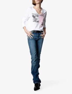 - Concealed button and zip-fly fastening at front
